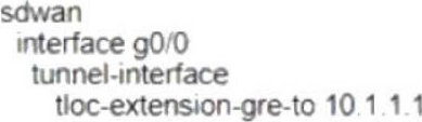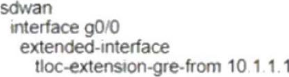 A network administrator is configuring a tunnel interface on a branch Cisco IOS XE router to run TLOC extensions.