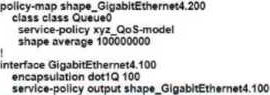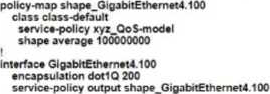 An engineer is configuring a QoS policy to shape traffic for VLAN 100 on a sub interface.