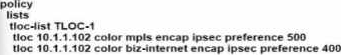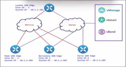An engineer configures Rome WAN Edge 10 use MPLS cloud as the preferred link to reach Paris WAN Edge and use biz-internet as a backup.