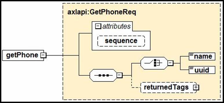 Based on the schema diagram in the exhibit, which two XML objects are valid AXL <getPhone> request <Body> elements? (Choose two.)