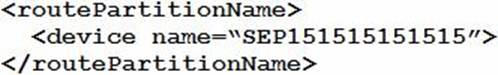 Which XML snippet is correct to associate a device with name “SEP151515151515”?