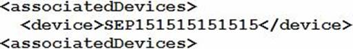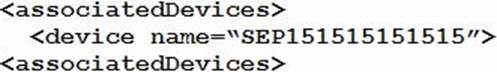 Which XML snippet is correct to associate a device with name “SEP151515151515”?