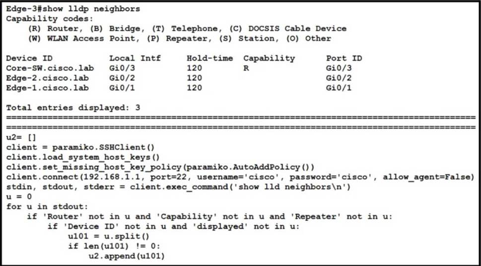 - A . It generates a list containing only the hostname of the LLDP neighbor.
