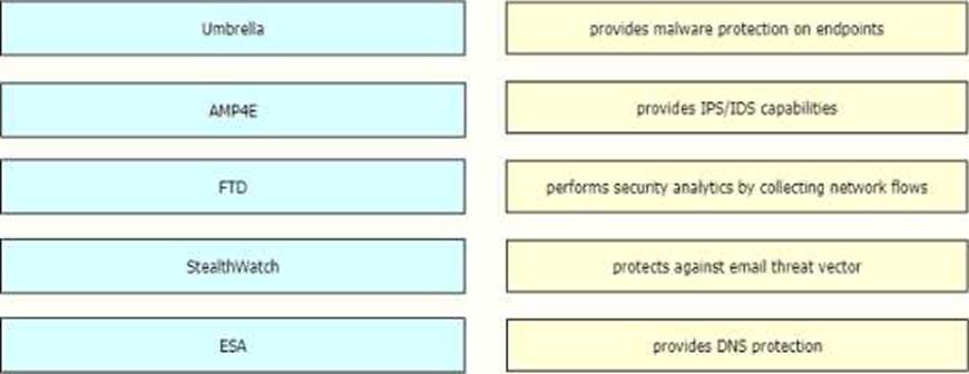 Drag and drop the threat defense solutions from the left onto their descriptions on the right.