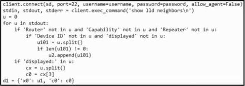 - D . It reads the output from show lldp neighbors into an array object.