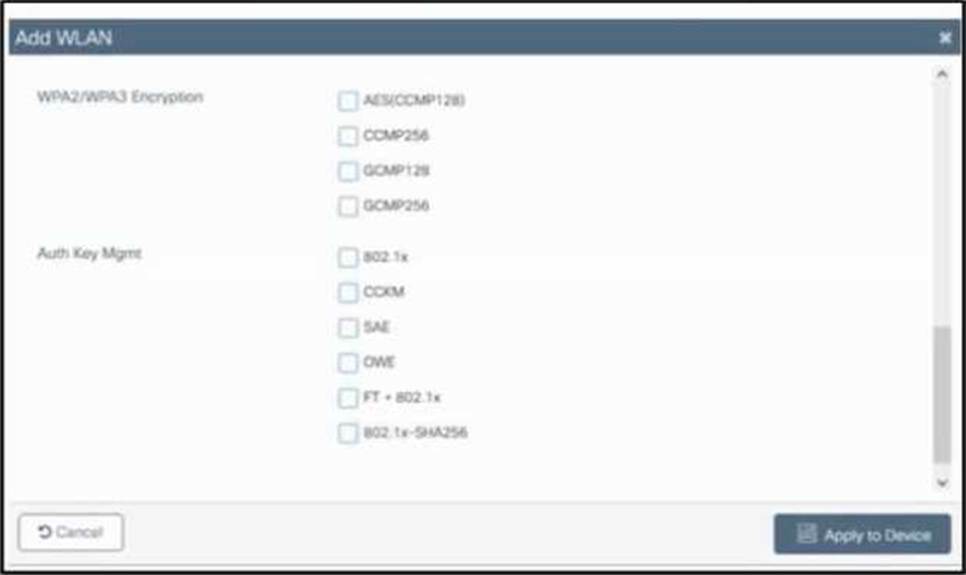 A customer asks an engineer to create a new secure WLAN to support only WPA3. Users must connect using a passphrase.