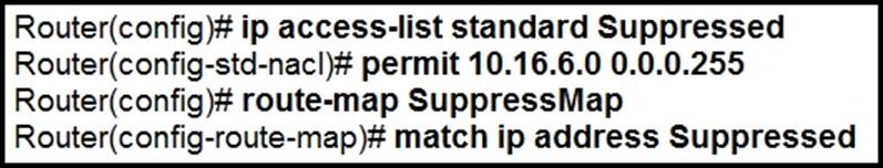 Router(config-router)# aggregate-address 10.16.6.0 255.255.255.0 as-set suppress-map SuppressMap - D . Router (config)# router bgp 300