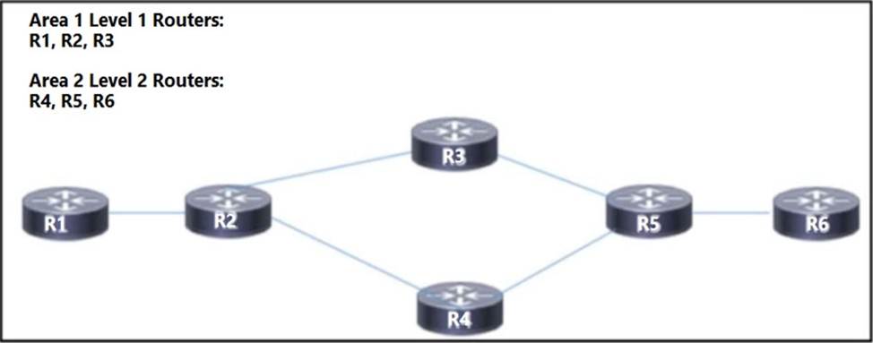 - B . Reconfigure routers R1, R2 R5. and R6 as Level 1/Level 2 routers.