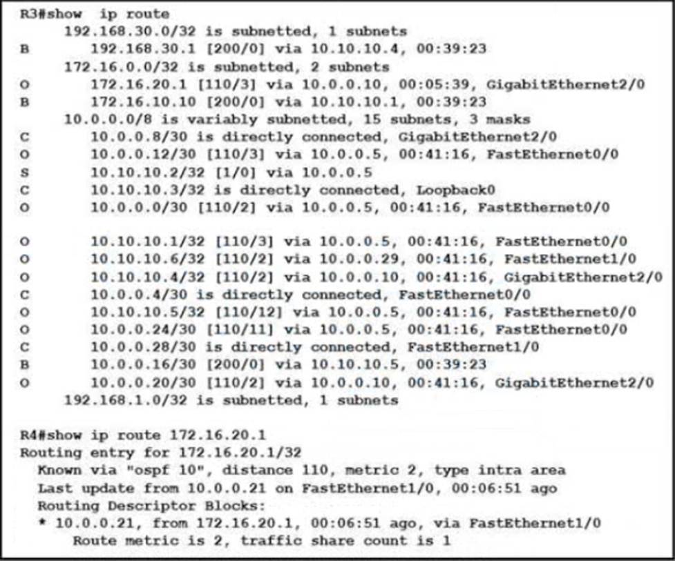 - A . Remove the route-map on R4 when advertising 172.16.20.1 in BGP to R3.