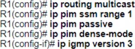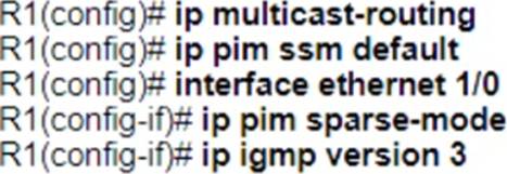 To implement a PIM-SSM (Protocol Independent Multicast – Source Specific Multicast) configuration for streaming live traffic across different domains, the network operator must ensure that IGMPv3 (Internet Group Management Protocol version 3) is enabled on R1. IGMPv3 is required for SSM because it allows the receiver to specify the source IP address of the desired traffic, which is a key feature of SSM. The operator would configure IGMPv3 on the interfaces that connect to the users who will be accessing the multicast stream. Additionally, PIM-SSM must be enabled on the router, and the multicast sources and groups must be properly defined.