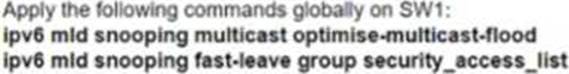 A network engineer working for a telecommunication company with an employee ID: 4602:62:646 is configuring security controls for the IPv6 multicast group, which is used for video TV. The solution from the engineer should reduce network usage and minimize the leave latency for the user that is connected to VLAN 76.