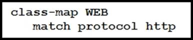 The configuration creates a class map named WEB which is used to match HTTP traffic. This class map can then be referenced in a policy map to define specific actions for traffic that matches the criteria, such as applying QoS policies or traffic shaping.
