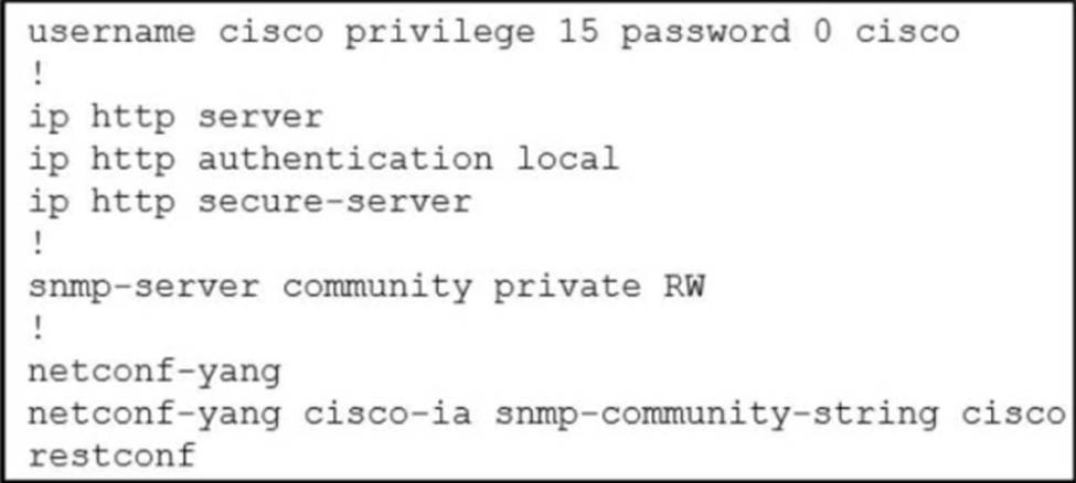 - A . netconf-yang cisco-ia snamp-community -string Public