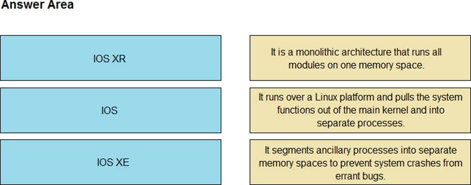 Drag and drop the OSs from the left onto the correct deceptions on the right.