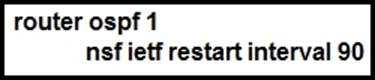 The configuration in the exhibit shows the implementation of Nonstop Forwarding (NSF) with OSPF. NSF is used to minimize the downtime of neighbor relationships during a Route Processor (RP) switchover. The nsf command enables NSF, and ietf specifies the use of the IETF standard for graceful restart in OSPF. The restart interval 90 sets the time, in seconds, within which the restarting router should complete its restart, helping to maintain uninterrupted forwarding despite the switchover.