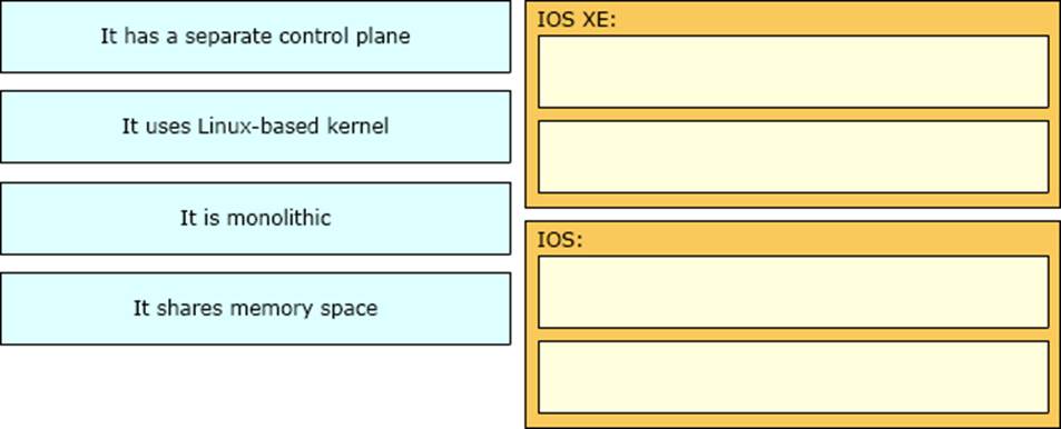 Drag and drop the descriptions from the left onto the corresponding OS types on the right.