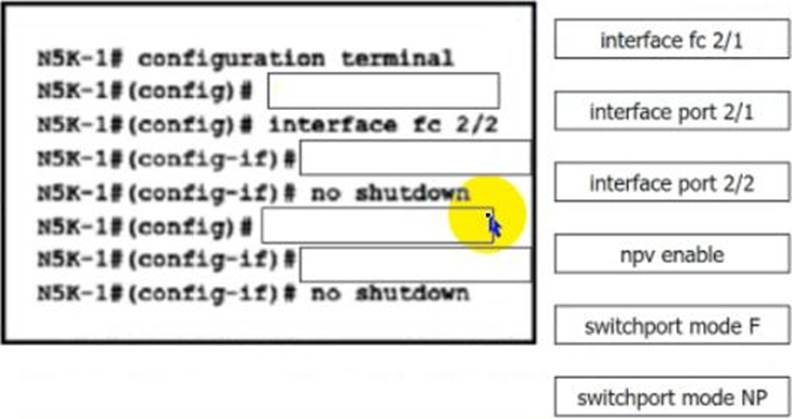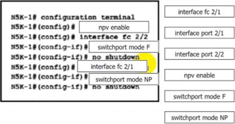 Drag and drop the configuration steps from the right to complete the configuration for N5K-1 on the left. Not all configuration steps are used.