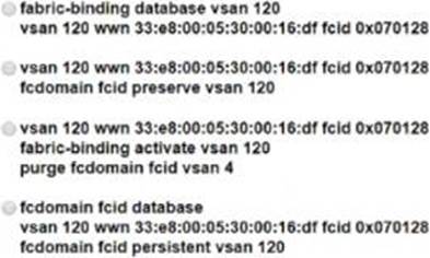 The Cisco environment also must integrate with a third-party solution that requires persistent Fibre Channel IDs for the VSAN. The WWN of the Cisco switch must be 33:e8:00:05:30:00:16:df and its Fibre Channel ID 0x070128.