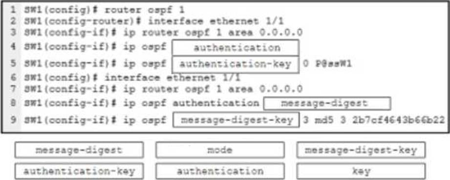 An engineer must authenticate OSPF on interfaces of me Cisco Nexus 9000 Senes Switch so mat