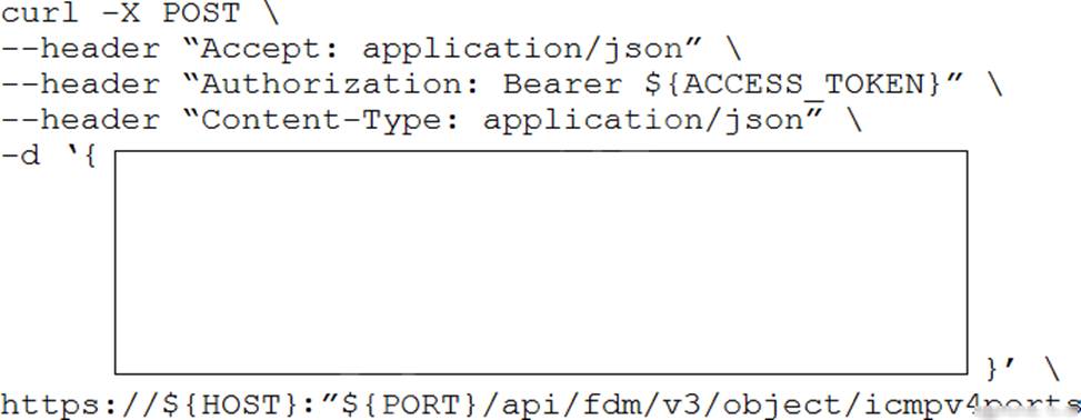 - A . "icmpv4Type": "ANY", "name": "string", "type": "icmpv4portobject"