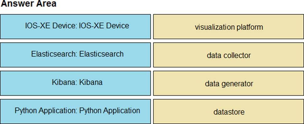 An application is being built to collect and display telemetry streaming data. Drag and drop the elements of this stack from the left onto the correct element functions on the right.