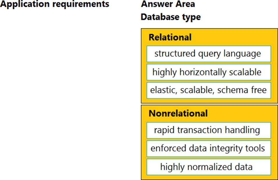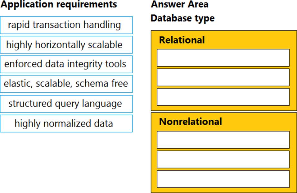 Drag and drop the application requirement on the left onto the database type that should be selected for the requirement on the right.