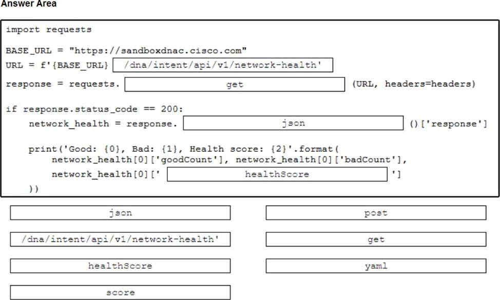 Drag and drop the code snippets from the bottom onto the blanks in the code to display wireless health information. Not all options are used.