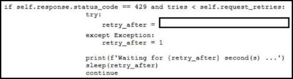 Which line of code needs to be placed on the snippet where the code is missing to provide APl rate-limiting to the requests?