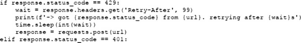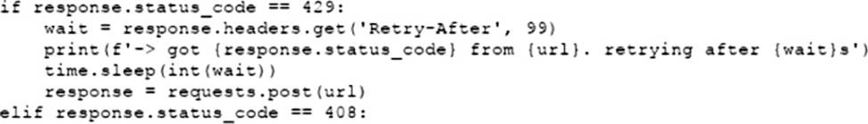 An engineer needs to implement REST API error handling when a timeout or rate limit scenario is present.