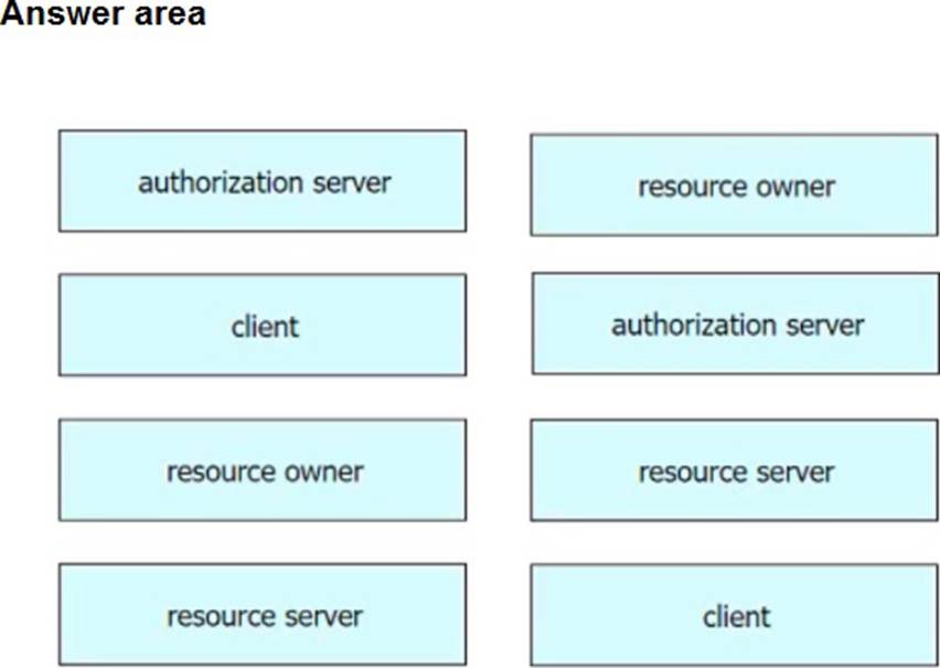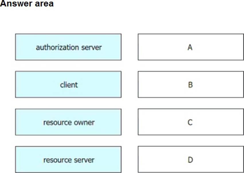 Drag and drop the components from the Oauth2 authorization protocol flow on the left onto the letter that matches the location in the exhibit.