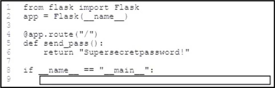 - B . app.run(ssl_context=(‘cert.key’, ‘key.pem’))