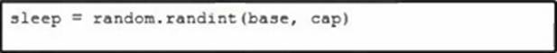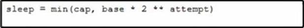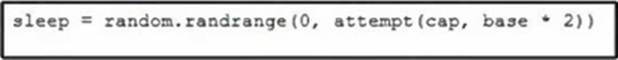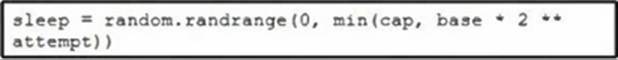 Which code snippet must be placed onto the blank in the code to add exponential backoff with jitter?
