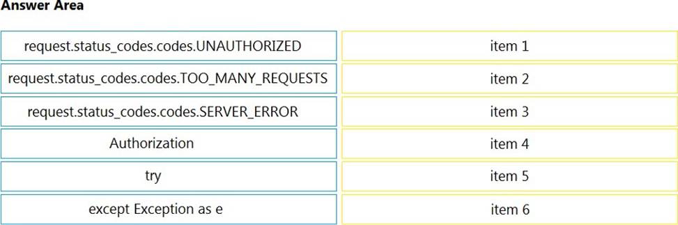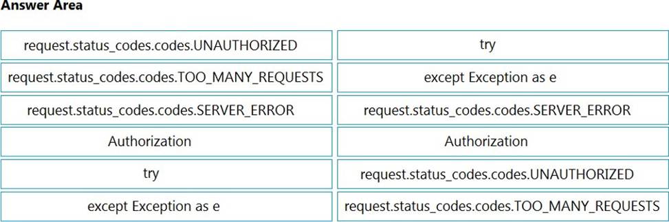 Drag and drop the code snippets from the left onto the item numbers on the right that match the missing sections in the exhibit to complete the script to implement control flow.