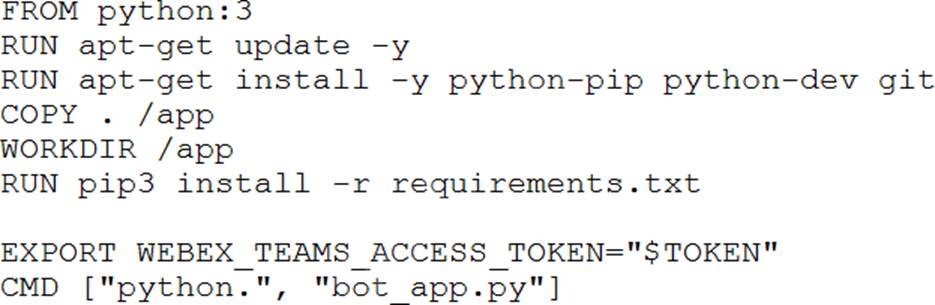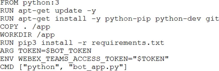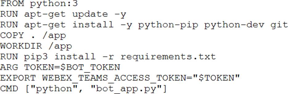 The developer now wants to containerize the Python application which will interact with the bot, and will use this build command to add the token to the build image: docker build –build-arg BOT_TOKEN=$bot_token