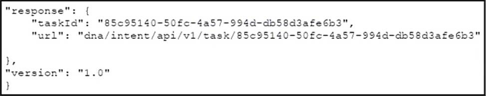 - D . Send a REST GET API to the Cisco DNA Center with the returned taskId.