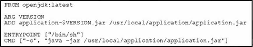 - B . docker build –build-arg VERSION="1.0.0" –tag application:1.0.0