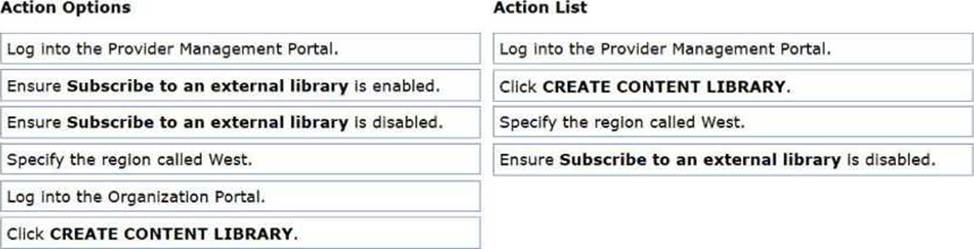 Select the four steps involved in configuring the provider content library. (Choose four.)