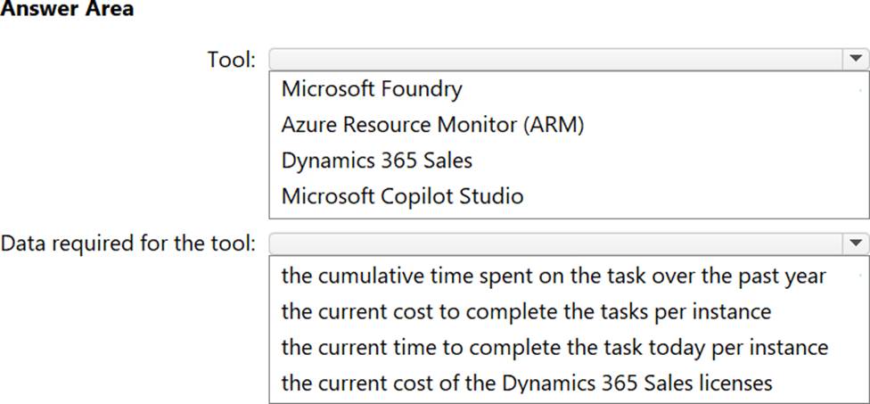 Which existing tool and data should you use to gather the required metrics for stakeholder signoff for the AI agents? To answer, select the appropriate options in the answer area. NOTE: Each correct selection is worth one point.