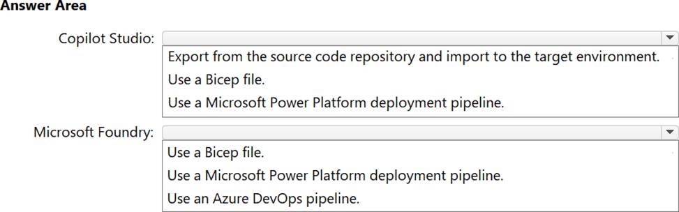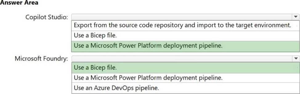 A company plans to implement an AI solution that will contain a Microsoft Copilot Studio agent and a Microsoft Foundry agent.