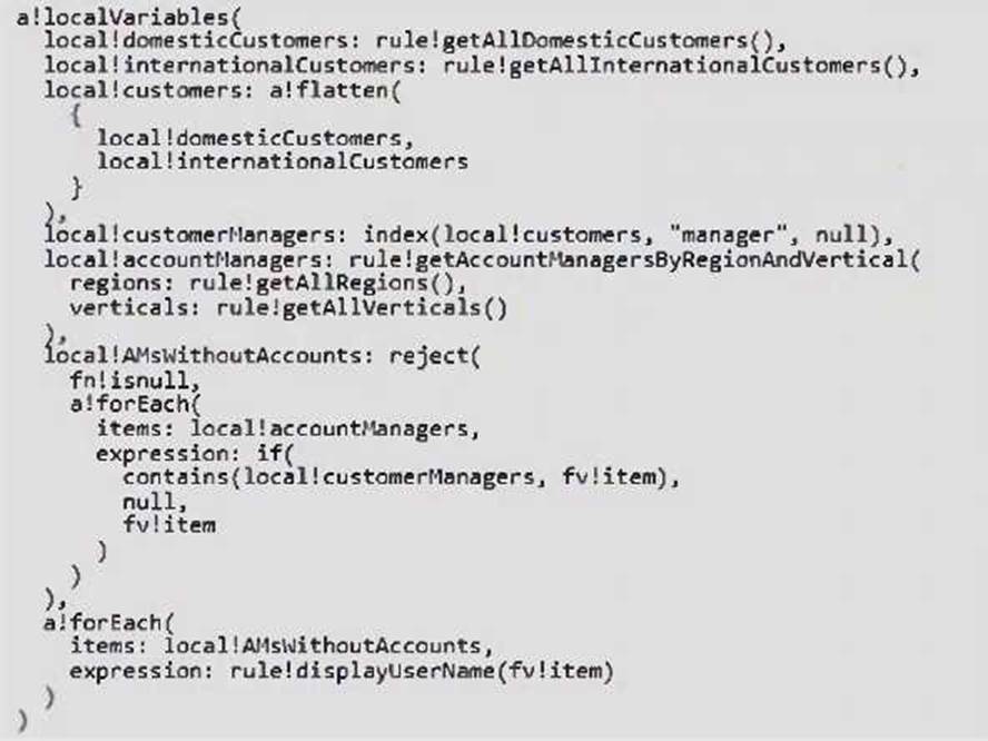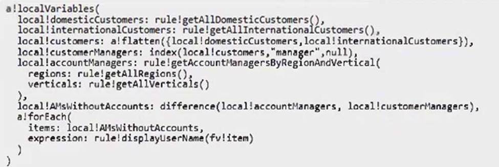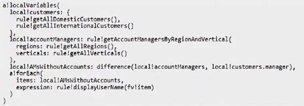 You need to write an expression to retrieve a list of all account managers who don’t currently have an active customer account.