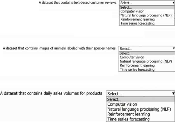 Select the correct ML technology from the following list for each dataset. Select each ML technology one time or not at all. (Select THREE.)