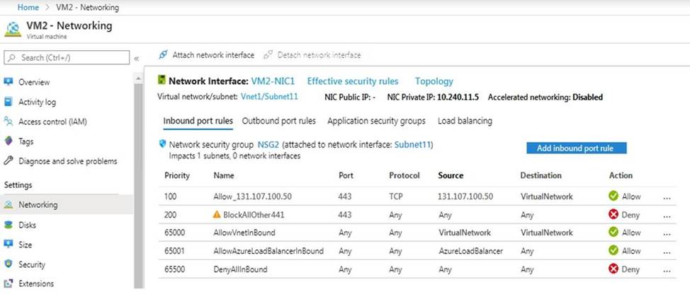 The effective network security configurations for VM2 are shown in the following exhibit.