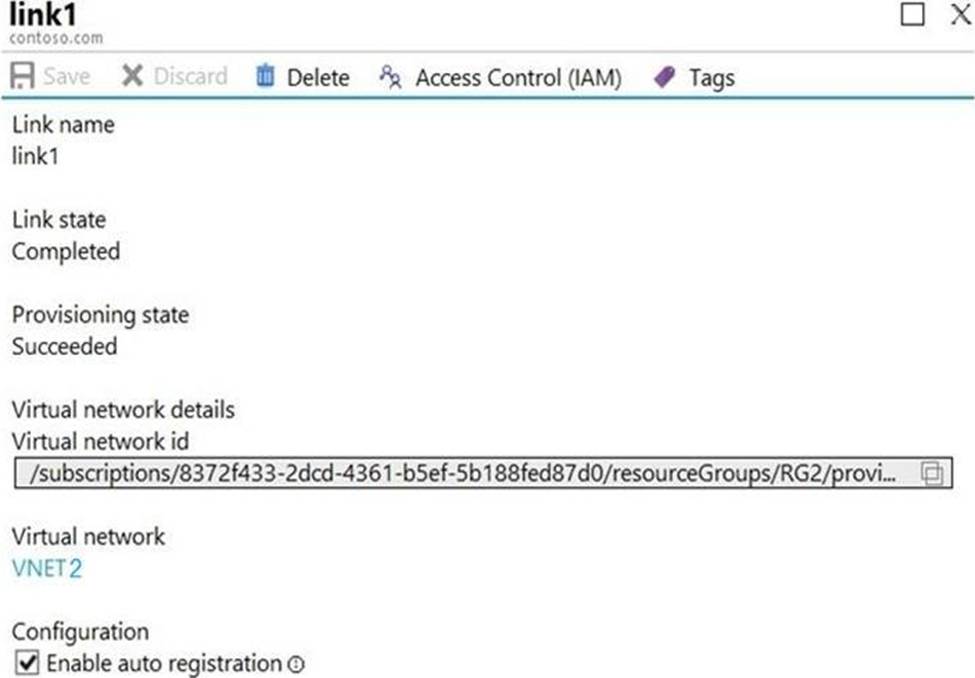 You create a virtual network link for contoso.com as shown in the following exhibit.