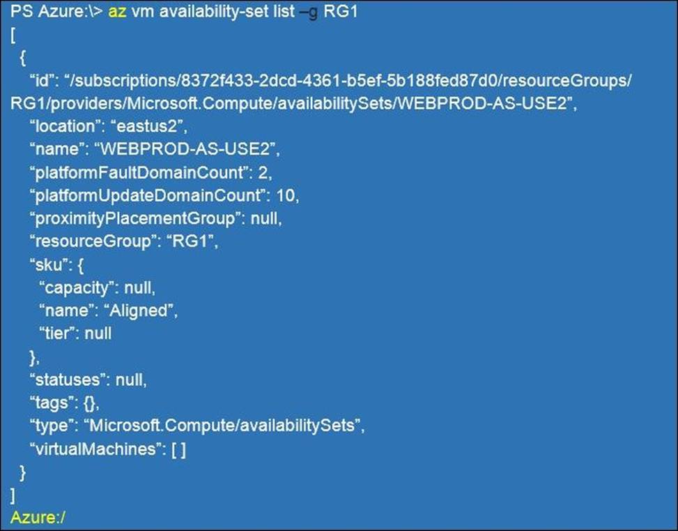 You have an Azure subscription that contains an Azure Availability Set named WEBPROD-AS-USE2 as shown in the following exhibit.