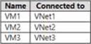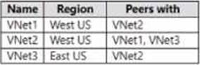 You have an Azure subscription that contains the virtual networks shown in the following table.