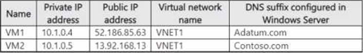 Which A records will be added to the adatum.com zone for each virtual machine? To answer, select the appropriate options in the answer area. NOTE: Each correct selection is worth one point.