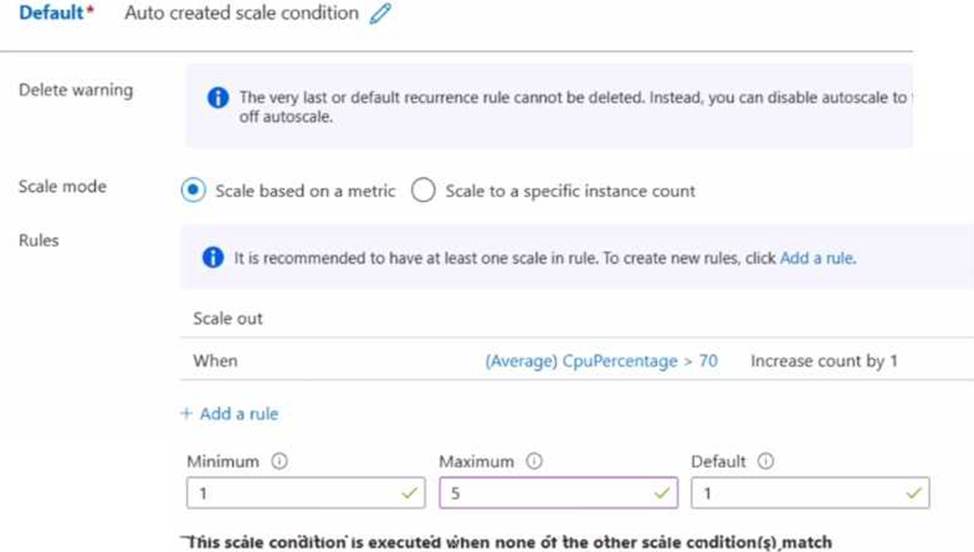 You have an Azure App Service web app named appl. You configure autoscaling as shown in following exhibit.