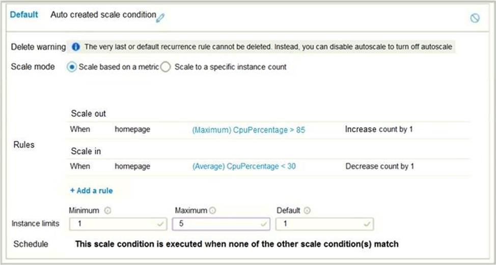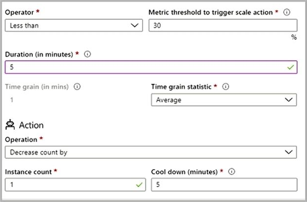 The scale-in settings for the App Service plan are configured as shown in the following exhibit.