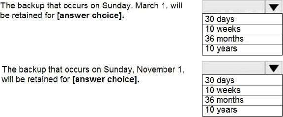 The yearly backup point occurs to 1 March and its retention period is 10 years.