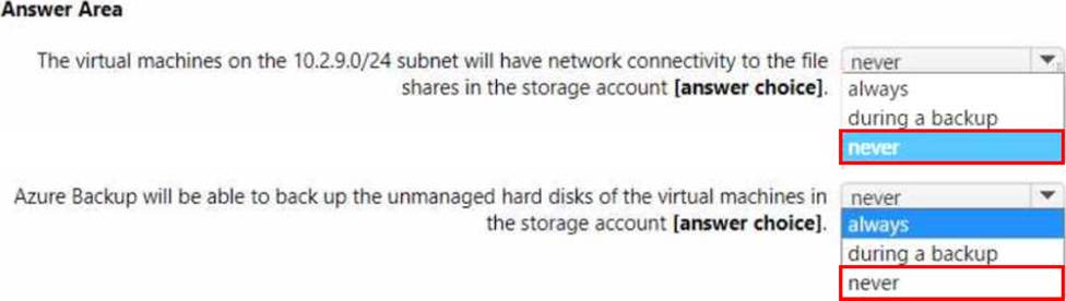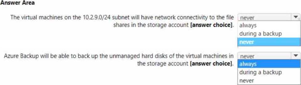 What should you identify? To answer, select the appropriate options in the answer area. NOTE: Each correct selection is worth one point.